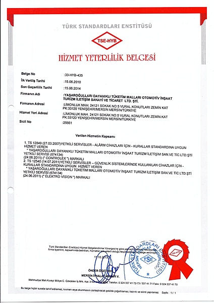 Hizmet Yeterlilik Belgesi TSE - HYB