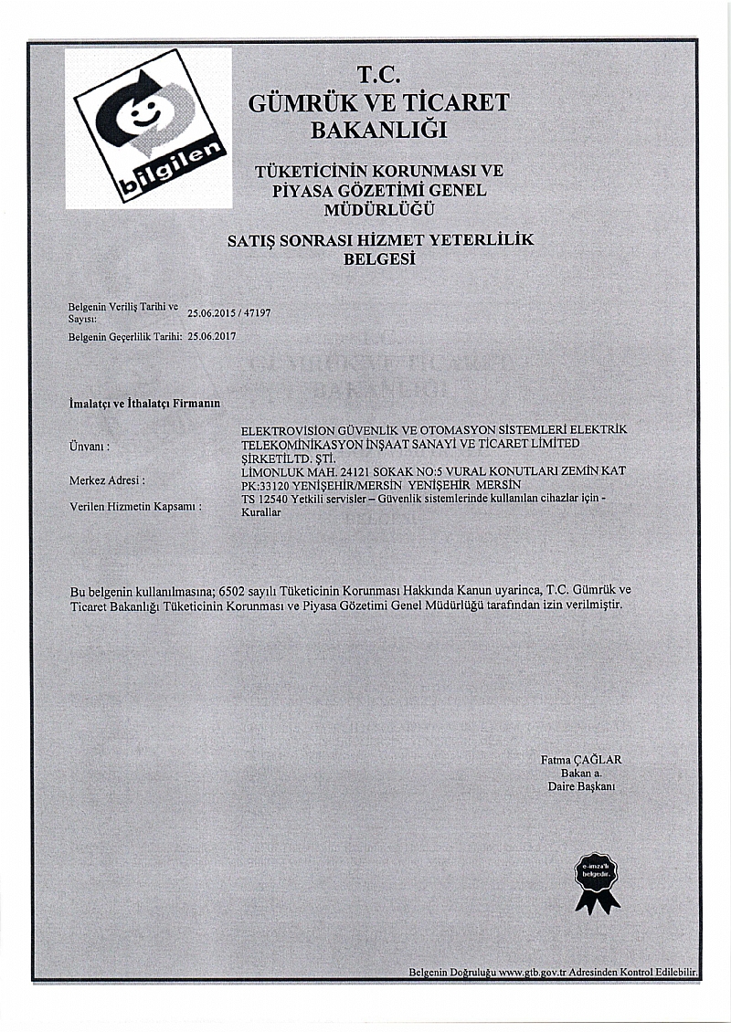 Satış Sonrası Hizmet Yeterlilik Belgesi Kamera